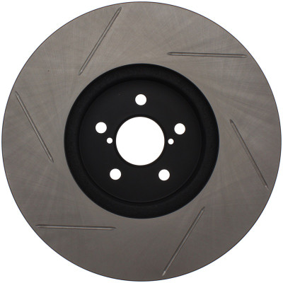 StopTech Slotted Sport Rotors are 1-piece direct replacement brake discs for factory brake systems and stock calipers that look great behind your wheels – and offer significantly improved braking performance. The unique slotting aids with heat and brake dust dispersal; prevents glazing of the pads; adds bite and improves wet and dry braking performance. Built to last; the black e-coating provides protection from corrosion and the high carbon metallurgy (in most applications) offers quieter operation; better crack resistance and increased performance.