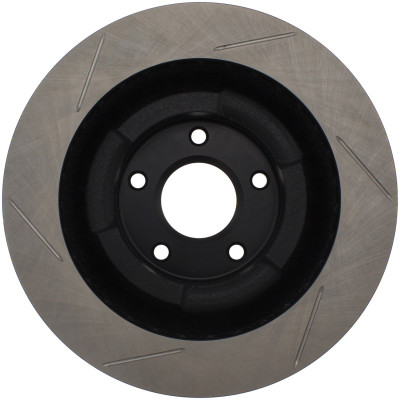 StopTech Slotted Sport Rotors are 1-piece direct replacement brake discs for factory brake systems and stock calipers that look great behind your wheels – and offer significantly improved braking performance. The unique slotting aids with heat and brake dust dispersal; prevents glazing of the pads; adds bite and improves wet and dry braking performance. Built to last; the black e-coating provides protection from corrosion and the high carbon metallurgy (in most applications) offers quieter operation; better crack resistance and increased performance.