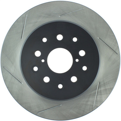 StopTech Slotted Sport Rotors are 1-piece direct replacement brake discs for factory brake systems and stock calipers that look great behind your wheels – and offer significantly improved braking performance. The unique slotting aids with heat and brake dust dispersal; prevents glazing of the pads; adds bite and improves wet and dry braking performance. Built to last; the black e-coating provides protection from corrosion and the high carbon metallurgy (in most applications) offers quieter operation; better crack resistance and increased performance.