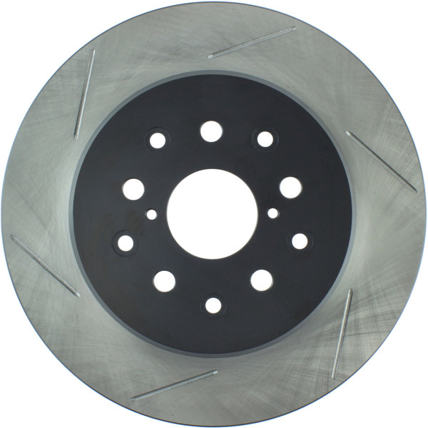 StopTech Slotted Sport Rotors are 1-piece direct replacement brake discs for factory brake systems and stock calipers that look great behind your wheels – and offer significantly improved braking performance. The unique slotting aids with heat and brake dust dispersal; prevents glazing of the pads; adds bite and improves wet and dry braking performance. Built to last; the black e-coating provides protection from corrosion and the high carbon metallurgy (in most applications) offers quieter operation; better crack resistance and increased performance.
