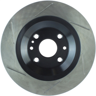 StopTech Slotted Sport Rotors are 1-piece direct replacement brake discs for factory brake systems and stock calipers that look great behind your wheels – and offer significantly improved braking performance. The unique slotting aids with heat and brake dust dispersal; prevents glazing of the pads; adds bite and improves wet and dry braking performance. Built to last; the black e-coating provides protection from corrosion and the high carbon metallurgy (in most applications) offers quieter operation; better crack resistance and increased performance.
