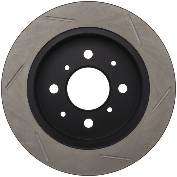 StopTech Slotted Sport Rotors are 1-piece direct replacement brake discs for factory brake systems and stock calipers that look great behind your wheels – and offer significantly improved braking performance. The unique slotting aids with heat and brake dust dispersal; prevents glazing of the pads; adds bite and improves wet and dry braking performance. Built to last; the black e-coating provides protection from corrosion and the high carbon metallurgy (in most applications) offers quieter operation; better crack resistance and increased performance.