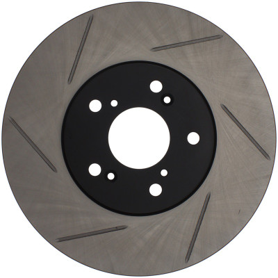 StopTech Slotted Sport Rotors are 1-piece direct replacement brake discs for factory brake systems and stock calipers that look great behind your wheels – and offer significantly improved braking performance. The unique slotting aids with heat and brake dust dispersal; prevents glazing of the pads; adds bite and improves wet and dry braking performance. Built to last; the black e-coating provides protection from corrosion and the high carbon metallurgy (in most applications) offers quieter operation; better crack resistance and increased performance.