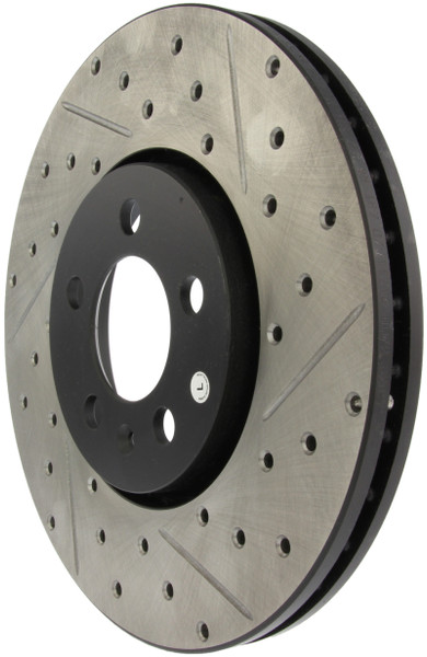 StopTech Drilled and Slotted Sport Rotors are 1-piece direct replacement brake discs for factory brake systems and stock calipers that look great behind your wheels – and offer significantly improved braking performance. The unique cross-drilling and slotting aids with heat and brake dust dispersal; prevents glazing of the pads; adds bite and improves wet and dry braking performance. Built to last; the black e-coating provides protection from corrosion and the high carbon metallurgy (in most applications) offers quieter operation; better crack resistance and increased performance.