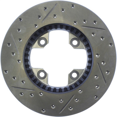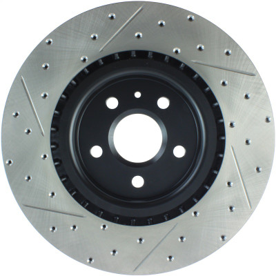 StopTech Drilled and Slotted Sport Rotors are 1-piece direct replacement brake discs for factory brake systems and stock calipers that look great behind your wheels – and offer significantly improved braking performance. The unique cross-drilling and slotting aids with heat and brake dust dispersal; prevents glazing of the pads; adds bite and improves wet and dry braking performance. Built to last; the black e-coating provides protection from corrosion and the high carbon metallurgy (in most applications) offers quieter operation; better crack resistance and increased performance.