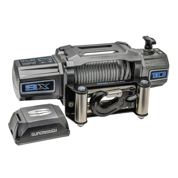 The SX10 is engineered to provide users the ideal combination of power, speed, innovation, and proven performance they demand from Superwinch. Innovative features such as a patented drum light, relocatable die-cast aluminum control box, 3/8 in. diameter wire rope and a 12' lighted wired remote that comes standard. SX Series winches exceed the most demanding standards of today's modern vehicles, while delivering an affordable and stylish design which incorporates many class leading features not found in other high-performance winches. Providing 10,000 lbs. of raw pulling power, the new SX10 wire rope model has a sleek modern look and is built to last. With an IP68 rating for dustproof and waterproof operation, and a durable metallic graphite powder-coated finish this winch has it all.