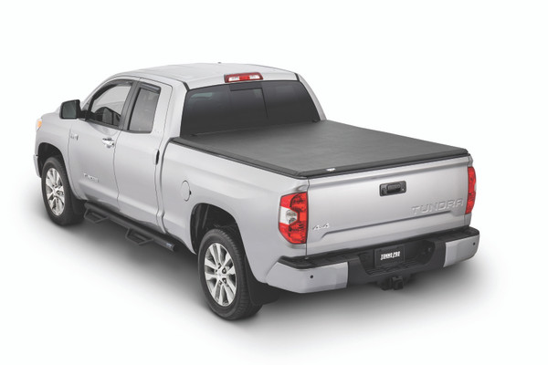 The Tonno Pro Hard Fold Tri-folding Tonneau Cover has an extremely tough all-aluminum underbody frame covered with our highest marine grade vinyl on top. This impact resistant cover offers maximum security and durability with easy installation and operation. The Hard Fold won't scuff or dent like other all-aluminum hard folding covers and is engineered with our patented design to hold up to the toughest environments. To open the Hard Fold, simply unclamp the EZ lock handles and fold the cover towards the cab. When you need to haul larger cargo, the nylon cab straps hold the cover in the partial open position. This cover comes completely assembled Â-- no drilling is required Â-- and installation time is less than 10 minutes.
