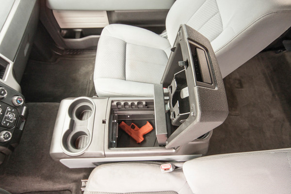 Continuing the Tuffy legacy of designing and manufacturing the finest console safes in the industry since 1997, Tuffy is proud to introduce our Security Console Insert for the Ford F-150 XLT with full center console and column shift. This 16 gauge steel console safe provides style, security and convenience. While maintaining the refined curves of the OEM console, the Tuffy console safe transforms your OEM console into a heavy-duty lockable storage area utilizing Tuffy’s Pry-Guard locking system with 10 tumbler double bitted security key to help protect valuables from thieves. The Tuffy console safe provides access to optional OEM USB and power outlets inside the console utilizing an exclusive lid support feature that keeps the lid open while accessing contents. It maintains a completely stock look, armrest and lid. Featuring a durable texture powder coat finish, the safe comes ready to install in just a few minutes without drilling.