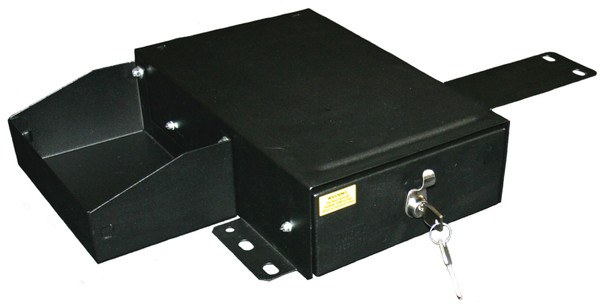 This high security 16 gauge steel security drawer mounts under the passenger’s side seat in a ‘66 - ‘77 Ford Bronco. The formfitting design of the Tuffy lockbox has over 439 cubic inches of lockable storage. Its secured contents are easily accessed by maneuvering the drawer open and closed on the smooth ball bearing slides using the convenient pull lever. Featuring Tuffy’s Pry-Guard Locking system with a 10 tumbler double bitted security lock with built in weather seals. The design incorporates a heavy duty fully extending slide system, weather seal, side storage tray, and welded construction. A formed rib in the enclosure additionally strengthens the locking system. Mounts inconspicuously under the passenger’s side seat in an early Ford Bronco out of apparent sight of would be thieves. Uses the factory hardware without drilling.