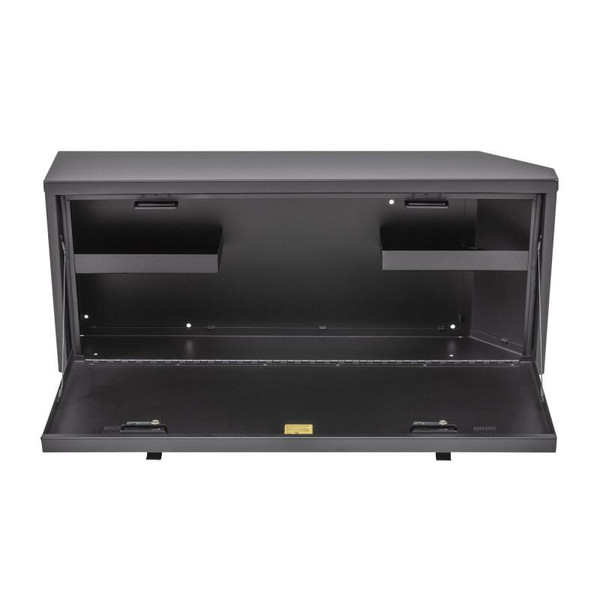 This heavy duty, high security lock box mounts on the inside of the Jeep JL tailgate providing ample secure storage for tools and other gear. The door folds down creating a work table for cooking or quick sorting and access of the lock box contents (Supports up to 40 lbs.). The Tailgate Lock Box comes equipped with 2 removable shelves for organization of smaller items. The entire Tuffy JL Tailgate Lock Box is constructed using welded steel, heavy duty fasteners and is covered with a durable textured powder coat finish. The JL Tailgate Lock Box installs to the JL Tailgate Rail mounts using standard hand tools with or without an OEM hardtop. Featuring Tuffy’s Pry-Guard Locking System with a 10-tumbler double bitted security lock with built in weather seals. We engineered it to work seamlessly with the Tuffy JL Tailgate Enclosure to double down on your secure cargo storage options.
