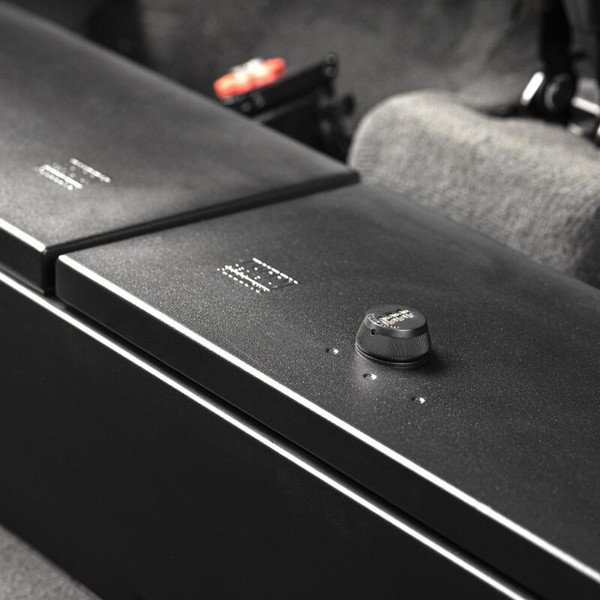 The Tuffy lockbox mounts under the rear seat in Chevy and GMC Crew Cab and Double Cab pickup trucks. This high security welded steel security lockbox has a full width formfitting design creating over 3500 cubic inches of lockable storage. Easily access your secured contents by flipping up the corresponding lid under your 60/40 split bench seat. The unique design allows the full width to be used to stow firearms or other long items. Feel confident securing your gear using Tuffy's Pry-Guard Locking System with three-digit combination security locks with built in weather seals. Mounts inconspicuously under the seat out of sight of opportunistic thieves with chamfered corners for easier passenger access. Declutter your space by quickly and easily installing this Tuffy lockbox using the factory hardware without drilling. When you need additional floor space, simply remove the lockbox in seconds without the need for any tools.