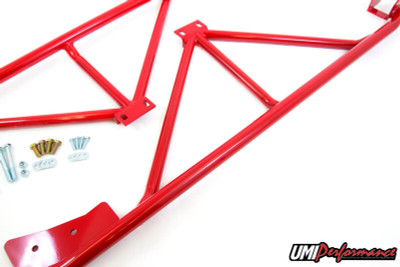 This tubular set-up is a 100% bolt in and requires no welding, grinding or drilling and can be installed in 30 minutes or less! This set up is designed to tie the front and rear subframes together using bolt-in hardware supplied. Subframe connectors improve your car's handling ability while reducing dash rattles and quarter panel flexing, designed for auto-cross, road race and drag race set-ups. By connecting the front and rear subframes together this allows better weight transfer for improved traction and straighter launches. This set-up tucks tight against the floor using strong DOM tubing, causes no ground clearance loss and clears with any exhaust set-up.