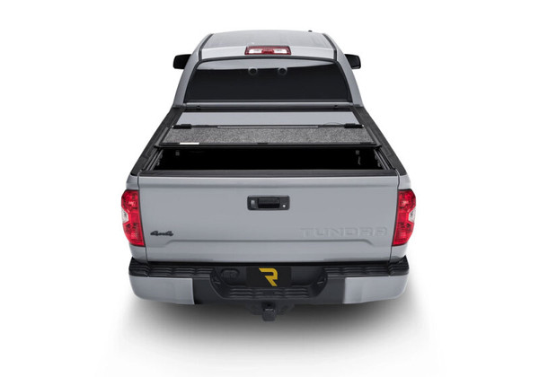 If you're in the market for sleek, stylish bed protection for your pickup, then consider the low-profile, color-matched aesthetic of a Fusion Tonneau Cover from UnderCover! This tonneau cover offers a classic tri-fold design, exceptional theft resistance, and professionally paint-matched top panels that blend seamlessly with the body of your pickup. This tonneau cover features a rugged aluminum panel construction for maximum strength and theft resistance. Unlike theft-prone soft covers, the UnderCover Fusion is cut and slash-resistant, keeping the valuables in your truck's bed safe and secure. However, this cover doesn't only resist theft but also extreme weather conditions! Integrated EPDM rubber hinges and perimeter seals prevent moisture intrusion, protecting your precious cargo against heavy rain, dirt, dust, and other contaminants. Aesthetically, this tonneau cover is tough to beat. Unlike most competitors, which feature a textured black finish that blends into the bed, the UnderCover Fusion features painted top panels that are professionally color-matched to your pickup's factory paint code, ensuring a flawless match that doesn't disappear into the bed but become a part of your pickup's body. UnderCover backs this finish with a limited lifetime warranty. Operating the UnderCover Fusion Tonneau Cover is simple and intuitive. The classic tri-fold design features three panels and three sets of hinges, which allow you to fold the cover onto itself toward the bulkhead for bed access. Where most tri-fold tonneau covers only offer 2/3 bed access, the UnderCover Fusion features integrated support arms that enable you to secure the cover against the rear window/cab for complete access to your pickup's cargo space when loading oversized cargo.