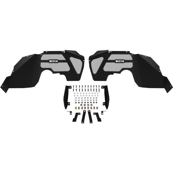 Stylish and durable, Westin's Wrangler JK Front Inner Fenders provide engine protection from rocks and debris while improving airflow to the engine compartment. Designed to fit with Westin's Front Tube Fenders and made of 16 gauge steel. Sold in pairs and available in textured black finish backed by a 3 year warranty. Hardware included for easy installation