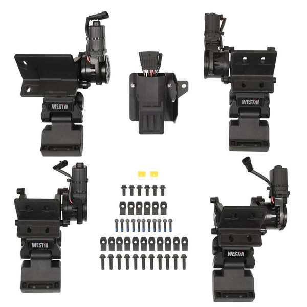 Introducing the all-new Westin Pro-e Power Running Boards, a superior upgrade that combines the functionality and appearance of your Truck, Bronco, Jeep or SUV. The Pro-e Power Running Boards are designed with a practical feature that automatically deploys when the vehicle's door is opened. This allows for easy entry and exit. When the door is closed, the running boards smoothly retract, seamlessly integrating with the vehicle's body and maintaining its sleek appearance.Equipped with two waterproof IP68 rated motors per side, these running boards are engineered for durability and reliability in any weather condition. The integrated LED lights illuminate the 6-inch wide, durable aluminum step surface, ensuring enhanced visibility and safety. Whether it's day or night, you can confidently step onto these running boards with their impressive weight capacity of up to 300 lbs. per side.The Pro-e Power Running Boards are constructed from corrosion-resistant aluminum and finished with a durable textured black powder coat. The included vehicle-specific mounting brackets and hardware guarantee a seamless installation process, ensuring a perfect fit for your vehicle.