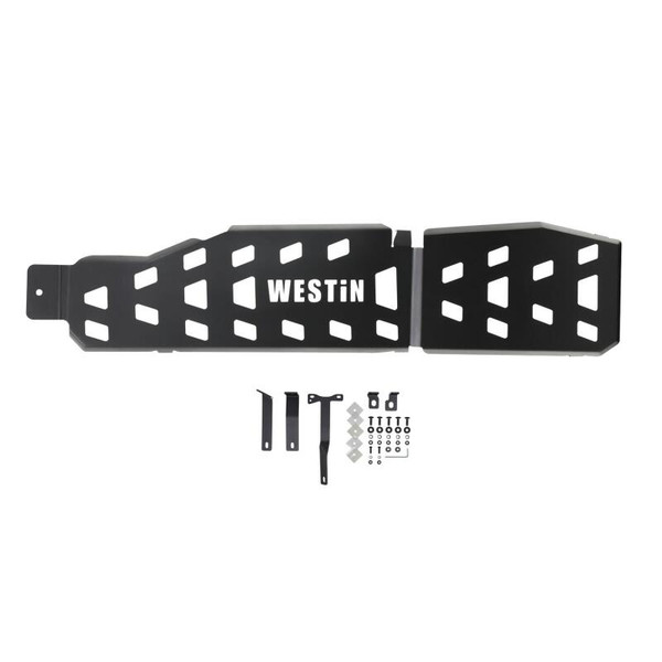 Westins Snyper Gas Tank Skid Plate protects the gas tank from damage during off-road driving or rock crawling. The 7 gauge steel plate features a laser cut Snyper logo and other openings that help minimize weight, and has formed edges for maximum strength. Also available for 4-door Jeep(R) Wrangler. Optional oil tank, transfer case, evap and muffler skid plates available (sold separately).