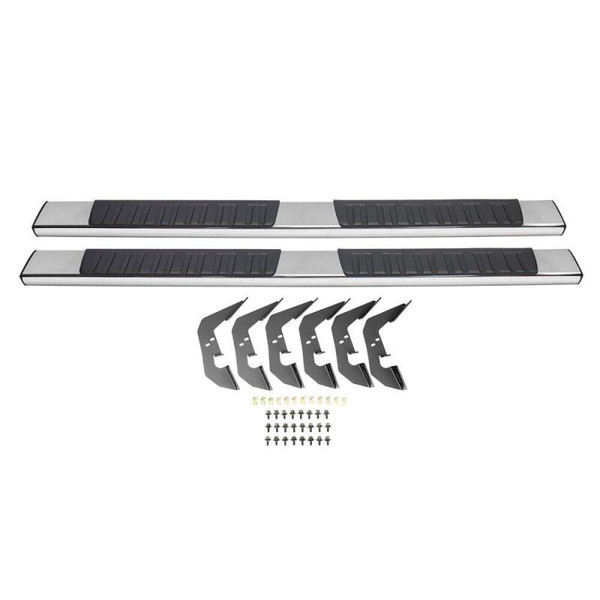 Westin R7 Boards feature oversized step pads and OE style traction grooves. R7 Boards are sold in complete kits that include: Driver and passenger-side boards vehicle specific mount kit and come with injection molded bracket covers for an extra clean look. R7 Boards are available in polished stainless steel backed by a lifetime warranty and black powder coated aluminum backed by a 3-year warranty.