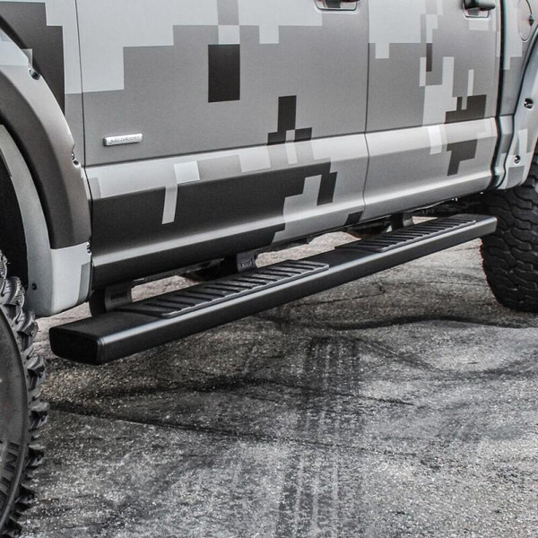 Westin R7 Boards feature oversized step pads and OE style traction grooves. R7 Boards are sold in complete kits that include: Driver and passenger-side boards vehicle specific mount kit and come with injection molded bracket covers for an extra clean look. R7 Boards are available in polished stainless steel backed by a lifetime warranty and black powder coated aluminum backed by a 3-year warranty.