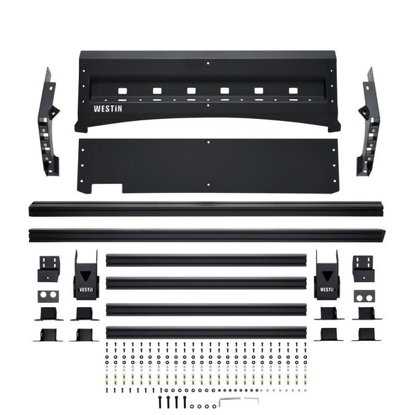 Introducing the all-new Westin Mesa Roof Rack, the ultimate companion for adventure enthusiasts and outdoor explorers! Crafted with precision engineering using high-quality extruded aluminum. This premium material offers unparalleled strength, durability, and corrosion resistance, making it the perfect choice for outdoor enthusiasts seeking a reliable and long-lasting roof rack. The multi-purpose cargo management system of the Westin Mesa Roof Rack is designed with flexibility in mind. Its 2.5in. x 1.5in. adjustable crossbars allow you to customize the setup according to the size and shape of your cargo. It features a removable 16-gauge aluminum wind deflector panel and 11-gauge aluminum visor side frames that serves a dual purpose. First, the wind deflector enhances aerodynamics by redirecting airflow, reducing drag, and minimizing wind noise during your travels. Enjoy a quieter and more fuel-efficient journey, all while maintaining a sleek and stylish appearance. Second, removing the wind deflector panel reveals a convenient light mount channel. This innovative design feature allows you to easily install auxiliary lighting to illuminate your path during nighttime adventures or low-light conditions enhancing your visibility and safety. The Mesa Roof Rack is built to last and features an electrostatic base coat for superior corrosion resistance, in combination with a durable textured black powder coat finish. All Mesa Roof Racks come complete with all necessary hardware to provide a hassle-free installation, while providing a full 3-Year warranty. Whether you're planning a weekend camping trip, a cross-country road adventure, or simply need extra storage space for your gear, this roof rack is the perfect solution.