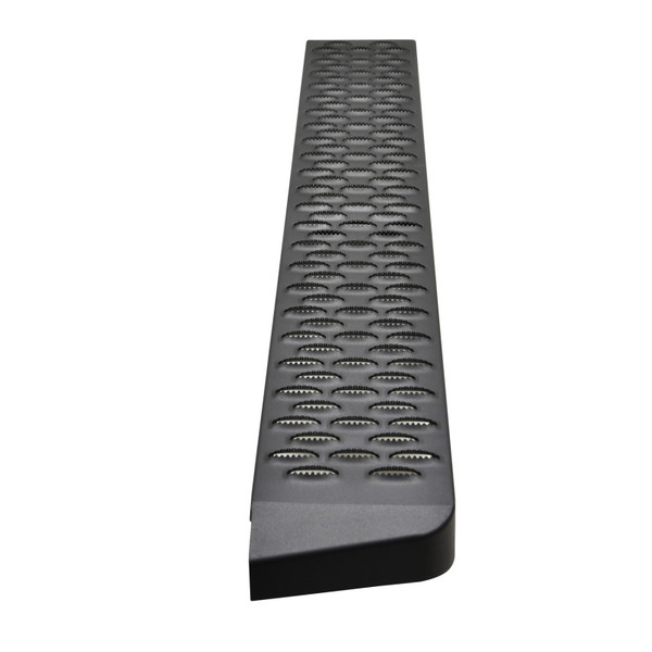 Westins Grate Steps Running Boards are engineered to provide maximum traction without sacrificing style. The 6 1/4 in. step surface width features an aggressive 1/4 in. high punched tread, allowing traction in any weather condition. The unique serrated edges help clean dirt, snow, and mud off your boots to keep truck cab clean. Grate Steps Running Boards feature stylishly formed and fully welded ends with a custom die-cast riveted logo badge. E-coated base coat provides long lasting corrosion protection, which far surpasses that of the competition. Solid 1-piece construction makes Grate Steps Running Boards ideal for construction and commercial use. Available in universal lengths (54 in., 68 in., 75 in., 79 in., 83 in., 86 in. and 90 in.), with vehicle-specific mount kit required (sold separately). Available in textured black powder coat finish.
