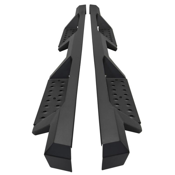 Westins HDX Drop Nerf Step Bars provide the rugged look and function that truck owners need and want. They feature a solid 1-piece steel construction and heavy duty punch plates creating high traction step areas. The HDX Drop Nerf Step Bars also feature Westins notched bar design which provides more than 2 in. of additional toe/heel placement versus competitive brands. Available in a textured black finish that complements Westin HDX Bumpers. The HDX Drop Steps have vehicle specific applications and include a vehicle specific mount kit, installation hardware and instructions.