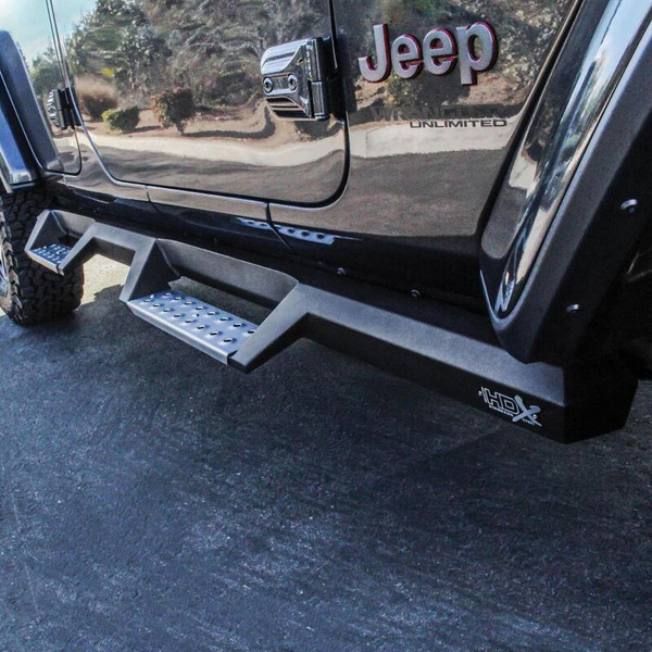 Westin's HDX Stainless Drop Nerf Step Bars are built with corrosion-resistant, textured black painted stainless steel designed to last under the toughest of conditions. With 1-piece construction, these nerf step bars provide over 2 added inches of toe/heel step area than our competitors and fit tight to the vehicle's rocker panel for a solid fit and rugged look. HDX Stainless Drop Nerf Step Bars include stainless steel step pads. Step plates are rust resistant and provide maximum traction. Bolt-on installation with no drilling is required. Includes mount kit.