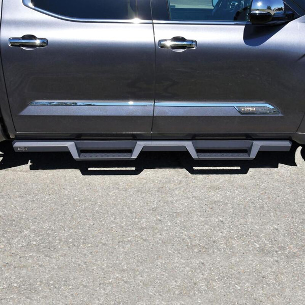 Westins HDX Drop Nerf Step Bars provide the rugged look and function that truck owners need and want. They feature a solid 1-piece steel construction and heavy duty punch plates creating high traction step areas. The HDX Drop Nerf Step Bars also feature Westins notched bar design which provides more than 2 in. of additional toe/heel placement versus competitive brands. Available in a textured black finish that complements Westin HDX Bumpers. The HDX Drop Steps have vehicle specific applications and include a vehicle specific mount kit, installation hardware and instructions.