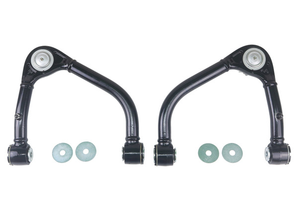 A short fall of the modern day IFS 4wd is the adjustment range provided for successful wheel alignments, this becomes even more of an issue when the vehicle is lifted by more than 1 inch. Not only does the vehicle run into camber and caster issues, but ball joint articulation and clearance issues to the coil over strut at ride and droop height. The new Whiteline offset UCA (Upper Control Arm) is an all-in-one solution for any vehicle that has been lifted between 30mm and 70mm. Providing an increase between +2.5 and +3.5 degrees of caster and up to 1.5 degrees of negative camber increase (figures quoted are based off an approximate 50mm/ 2 inch) along with greater clearance to the coil over strut and more articulation of the arm by virtue of new maintenance free GIIRO bushing technology.