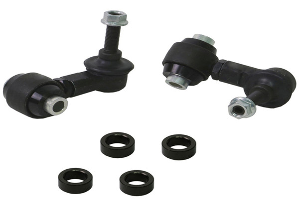 Not many enthusiasts are aware that OE and more importantly aftermarket sway bar effectiveness can be hindered by worn or inadequate mounts, drop links and lateral stoppers. Whiteline adjustable sway bar links are engineered to be up to the task with top spec, light weight componentry combined with a window of adjustability, eliminating sway bar preload on installation but most importantly ensuring the m aximum output of the sway bar for improved grip and better handling.
