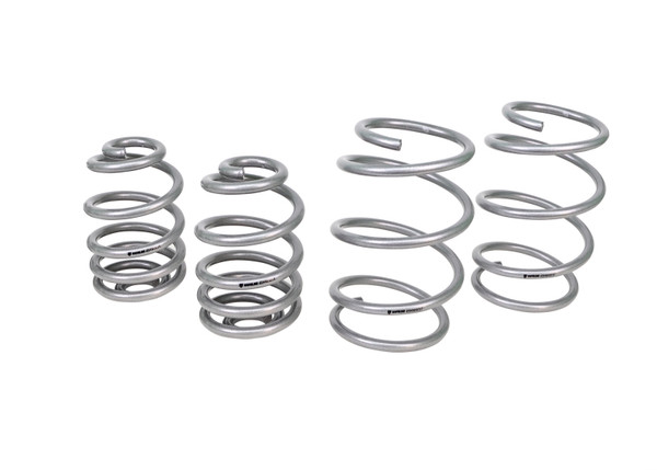 Whiteline Springs deliver improved vehicle performance whilst maintaining safety and ride quality characteristics. This kit contains 3.0kg/mm (168lb/in) front rated springs that provide a 40mm drop while the 6.8kg/mm (371lb/in) rated rears deliver a desirable 30mm to the vehicle. By lowering the vehicles centre of gravity, the unique and progressive rate coil design not only improve performance but enhance overall appearance. Developed and manufactured in Europe from the highest quality materials, coating and to the finest tolerances guaranteeing exact fitment. Whiteline Springs are engineered for optimal balance with OEM and aftermarket shocks. For total grip activation match with Whiteline Sway Bar and Essentials kit for unrivalled handling and optimal vehicle performance.