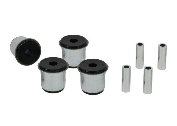 Worn front control arm bushings have a huge influence on vehicle stability, steering precision and braking efficiency. Replace worn bushings to as new condition utilising Whiteline's advanced synthetic elastomer bushings with core characteristics ensuring superior elasticity, memory and outright durability for all forms of driving applications.