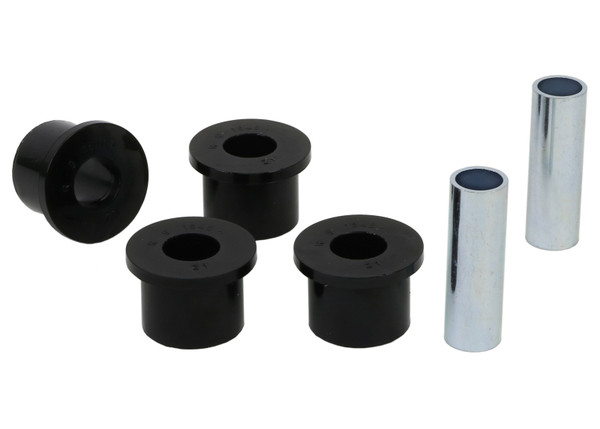 A critical service item for any leaf sprung vehicle. High kilometres and heavy load carrying causes excessive wear on rubber bushings. Whiteline's signature black bushings are made tough and offer outstanding abrasion resistance, high load bearing capability (4WD's, utes and towing), flexibility, increased tensile strength and chemical resistance to oil, grease, ozone and weathering.