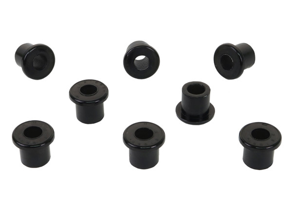 A critical service item for any leaf sprung vehicle. High kilometres and heavy load carrying causes excessive wear on rubber bushings. Whiteline's signature black bushings are made tough and offer outstanding abrasion resistance, high load bearing capability (4WD's, utes and towing), flexibility, increased tensile strength and chemical resistance to oil, grease, ozone and weathering.