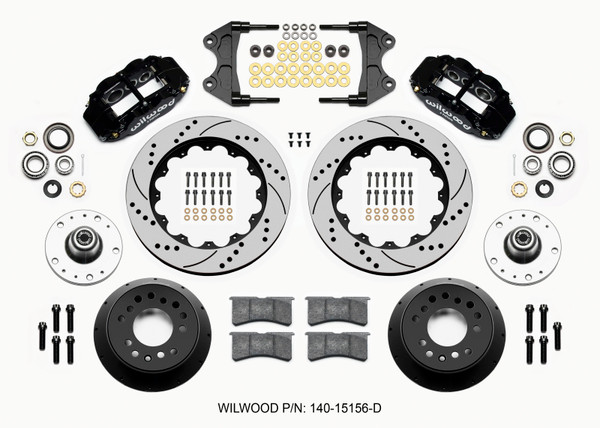 FNSL6R billet Forged six-piston calipers with 13"-14" rotors deliver the ultimate combination for braking power and style in kits engineered for Wilwood's Pro Spindles and offer complete disc brake upgrade solutions for drop spindle applications on American muscle cars and vintage rods. Now with modified hubs for 5 x 4.50" and 5 x 5.00" bolt circle Wheels. Built exclusively for 17" and larger wheels, SL6 kits enhance tire and suspension upgrades on all types of custom show and high performance dual-purpose street and track machines. A full range of options for caliper finishes and rotor designs are guaranteed to catch the eye of the most discriminating enthusiast while providing optimized brake performance for every individual application.